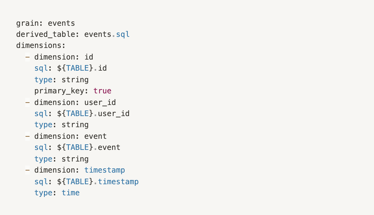 2. Create a grain for the derived table called events.grain.yml.